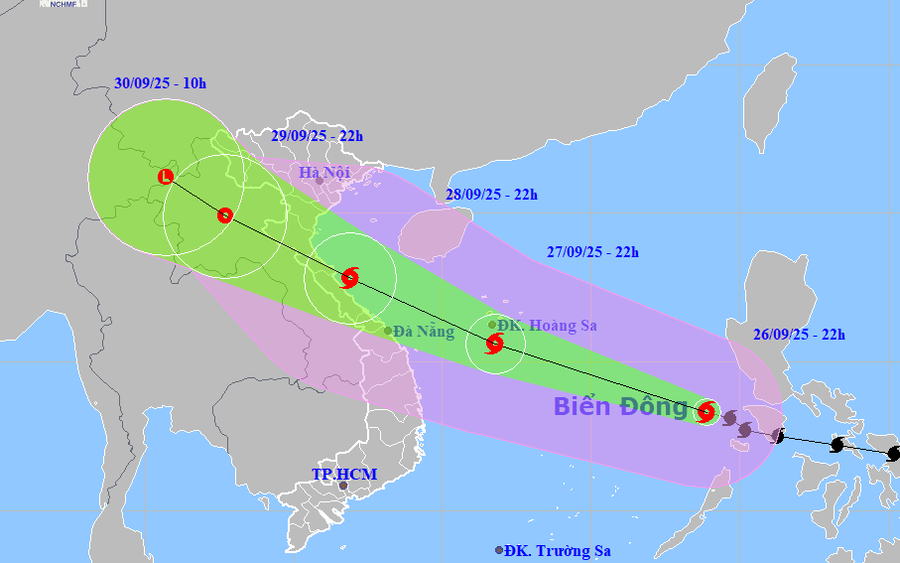 01 giờ ngày 30/9 | Tây Tây Bắc, 20-25km/h. suy yếu dần thành một vùng áp thấp |