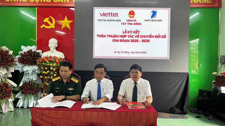 Cũng tại buổi lễ, UBND xã Tây Trà Bồng và VNPT Quảng Ngãi, Viettel Quảng Ngãi đã ký cam kết hợp tác trong công tác triển khai chuyển đổi số trên địa bàn xã Tây Trà Bồng trong thời gian tới.